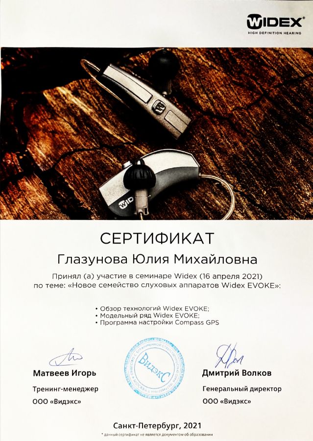 Постоянно повышаю квалификацию, в том числе и по сурдопедагогике и психологии адаптации ношения слуховых аппаратов, также изучаю в деталях новые слуховые аппараты, их особенности и характеристики.Ответы на частые вопросы